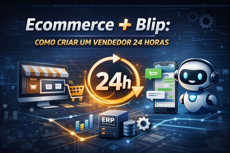 Esse cenário é ainda mais comum em empresas B2B ou operações que usam ERP Protheus, onde preço, estoque e condição comercial não são tão simples quanto “comprar e pagar no cartão”. É exatamente aqui que entra a combinação de ecommerce Flexy com Blip, criando um modelo de vendas que realmente funciona 24 horas, sem depender de alguém sentado na frente do computador.