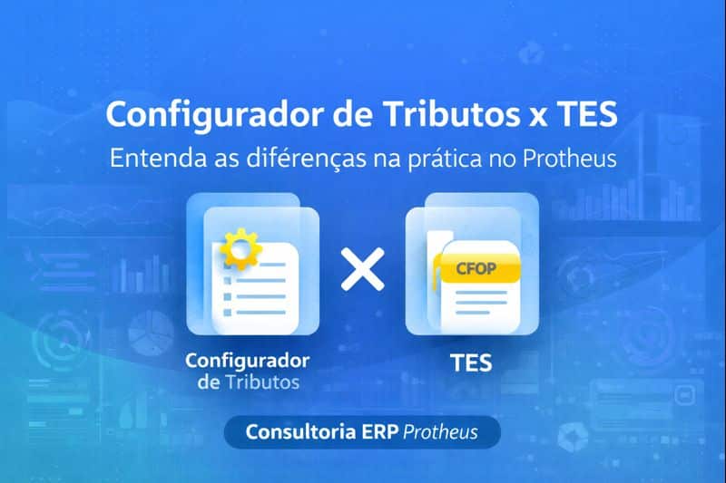 Um ponto importante é entender que o Configurador de Tributos não “apaga” o TES. O TES continua existindo e ainda tem seu papel dentro do Protheus. A diferença é que ele deixa de ser o protagonista absoluto da tributação.